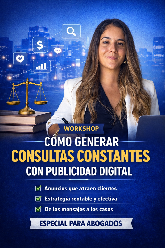 Si hoy publicás contenido, mostrás tu autoridad y empezás a posicionarte, este taller te va a enseñar cómo potenciar eso con campañas bien estructuradas, rentables y pensadas específicamente para servicios jurídicos.